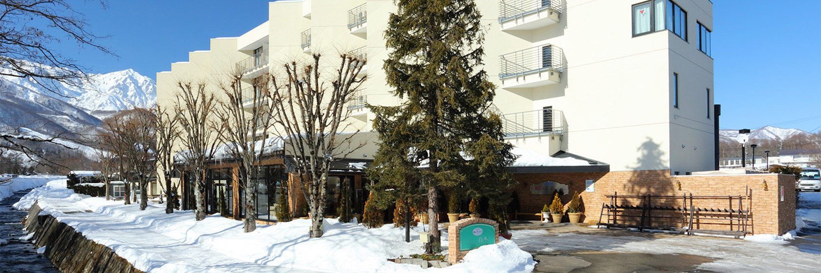 Hotel hakuba är ett trevligt hotell som ligger längst med floden straxt utanför bykärnan i Hakuba. Precis utanför hotellet ligger busshållplatsen för att enkelt ta sig till Hakubas alla liftsystem.