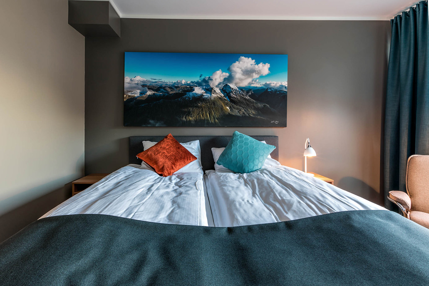 Vi bor på Dreges Hotell (fd. Stranda Hotel), precis vid fjorden, centralt i Stranda och vi tar dagligen vår egen buss till och från Strandafjellets skidanläggning (5 min). På hotellet finns det stor pool med tillhörande bastu. Här finns en mysig lobby med öppen spis som blir den naturliga samlingsplatsen efter dagens skidåkning. Som alternativ finns det också en bar inte alls långt från hotellet som brukar vara populär under veckosluten.