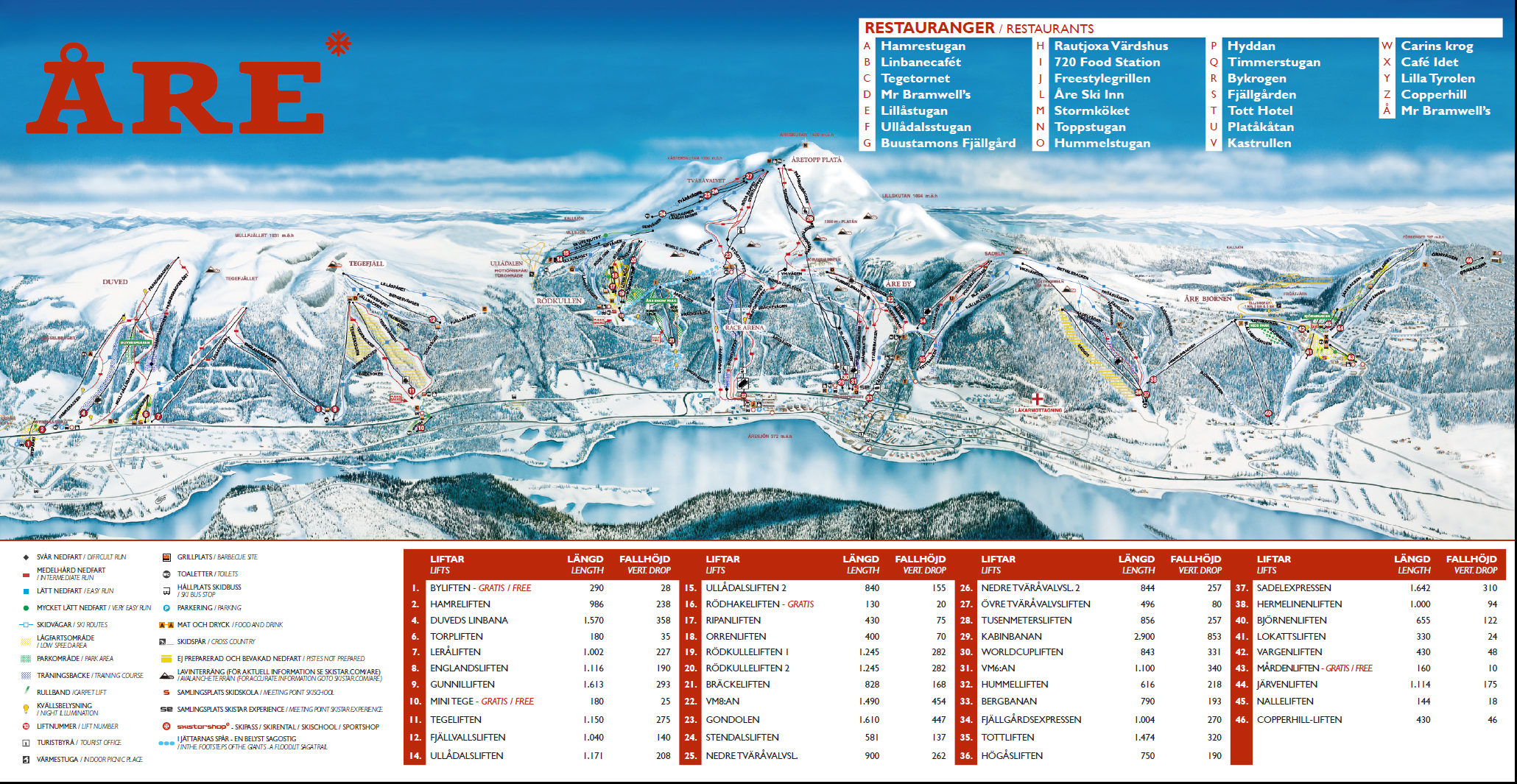 I Åre gäller det att vara förberedd med bra utrustning och sunt förnuft.Åre är så mycket mer än bara bra skidåkning och alpin kultur. Det finns ett fantastiskt bra utbud av bra restauranger i såväl byn som i backen. I Åre finns ett pulserande nöjesliv som i sina bästa stunder hör till det roligaste i skidvärlden.